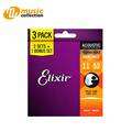 ELIXIR STRINGS PHOSPHOR BRONZE ACOUSTIC GUITAR STRINGS WITH NANOWEB COATING, 3-PACK,CUSTOM LIGHT (11-52) #16544